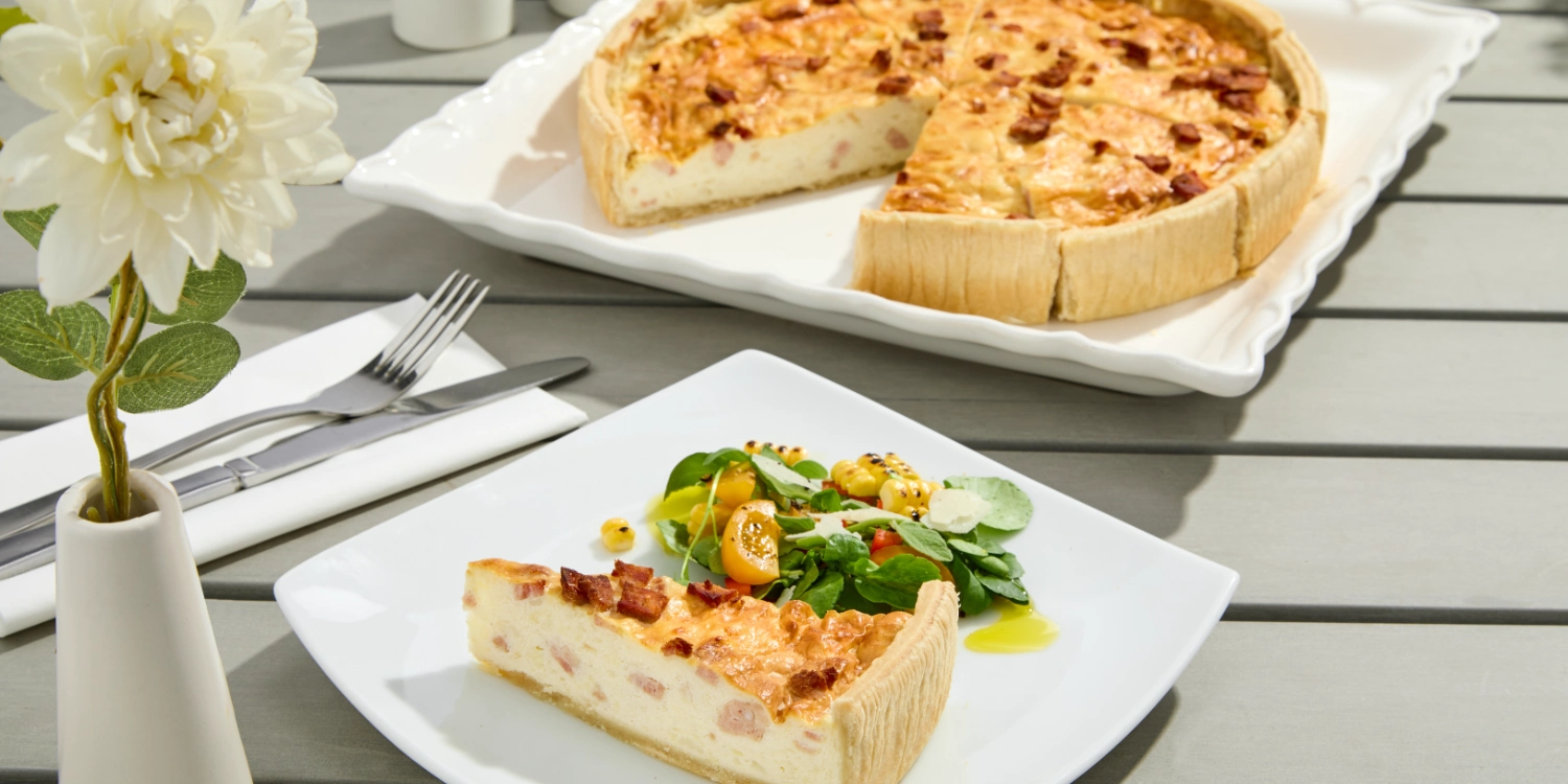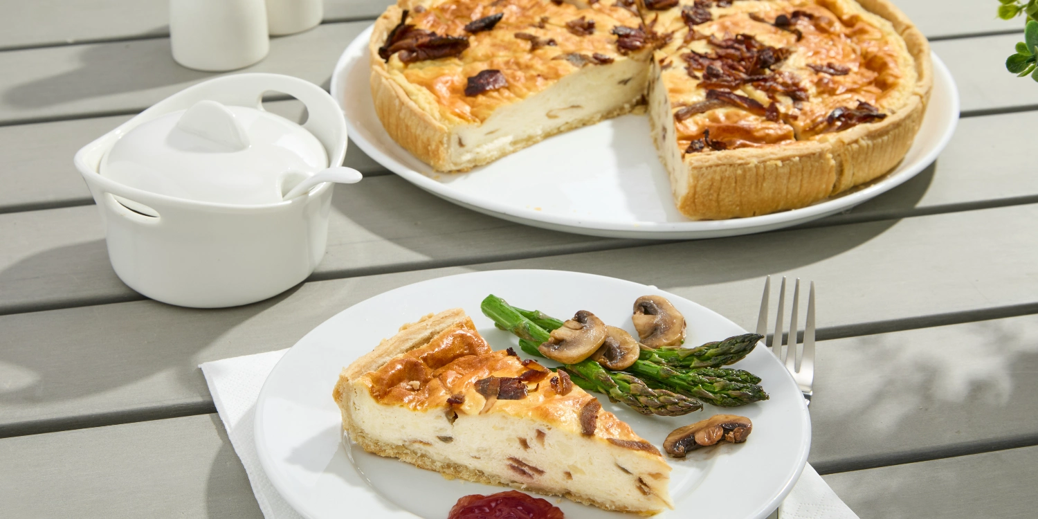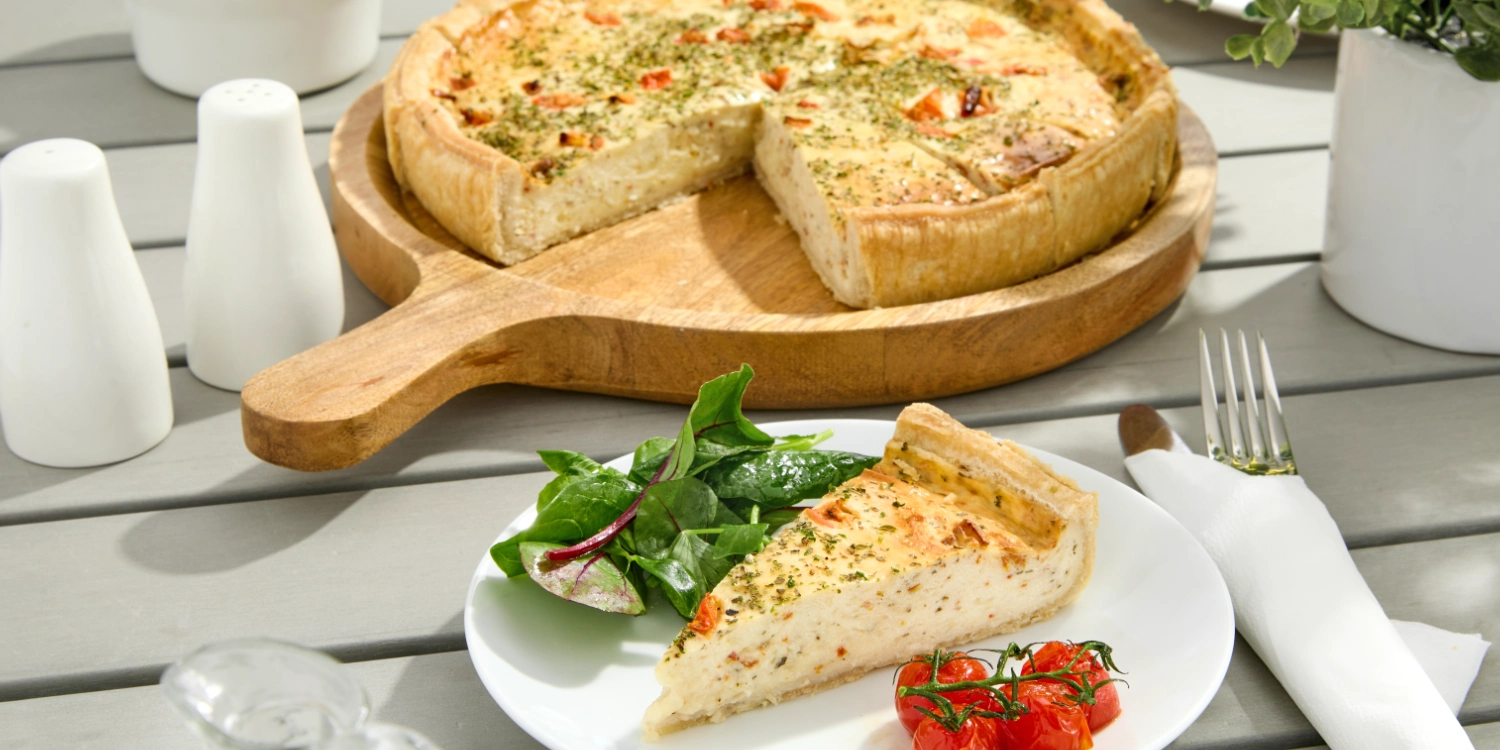 Quiche Lorraine – A traditional blend of mature Cheddar and smoked bacon.