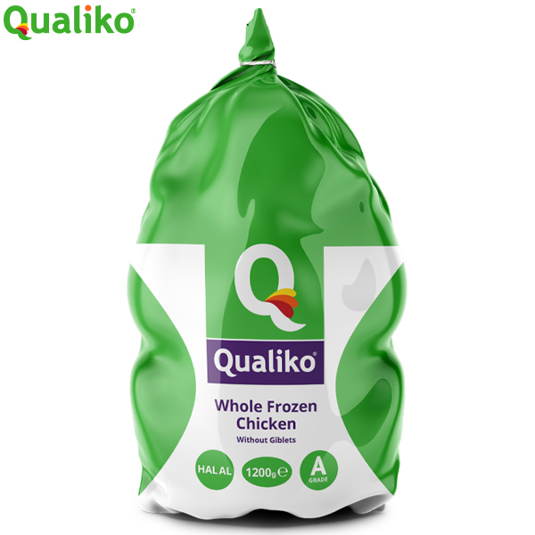 1.2kgx10 QUALIKO HALAL WHOLE RAW GRILLER CHICKEN IQF, CALIBRATED CHICKEN 10 PER BOX