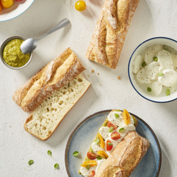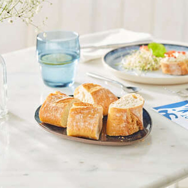 - Shaped shorter and wider than a standard baguette.