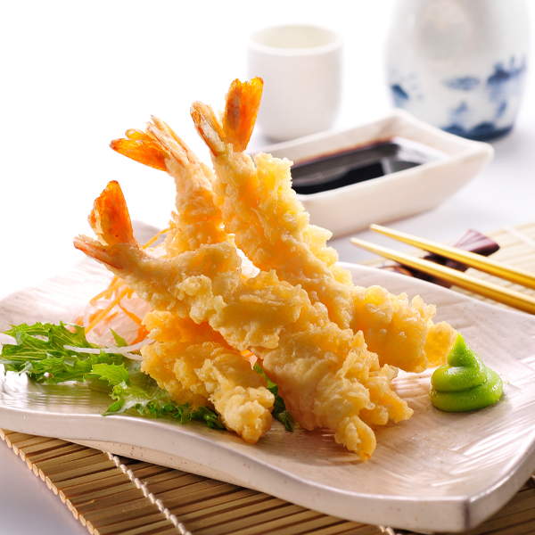 Premium large prawns in unique bubbly crisp Japanese style tempura coating, product is par fry withpalm oil.