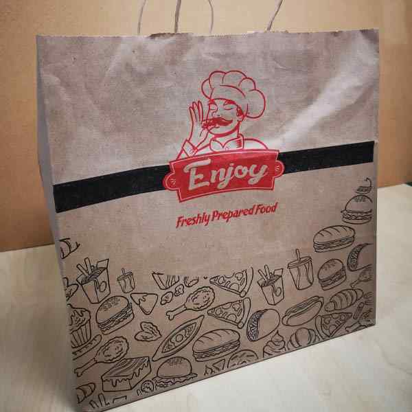 BROWN KRAFT TWISTED HANDLE ENJOY CARRIER JUMBO BROWN BAGS 320x320x210mm 1X100