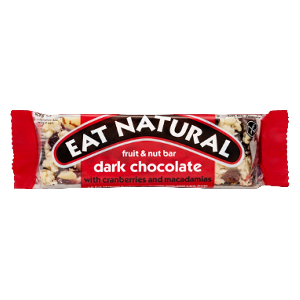 EAT NATURAL DARK CHOCOLATE (GF) 12 x45g FRUIT & NUT BARS WITH CRANBERY & MACADAMIAS