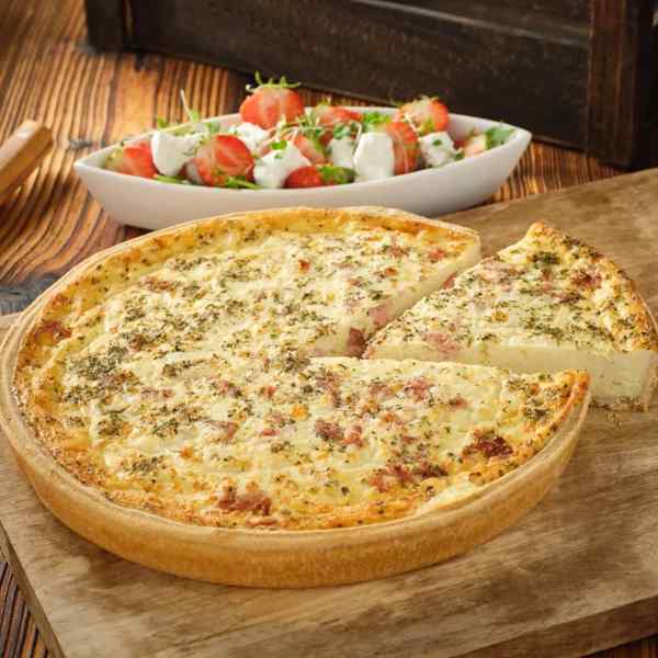 Professionally hand-finished and baked to perfection, our quiche features a delightfully golden crust that holds the creamy, savoury filling. Ideal for any hotel, pub, cafe, garden centre and nursing home meal.