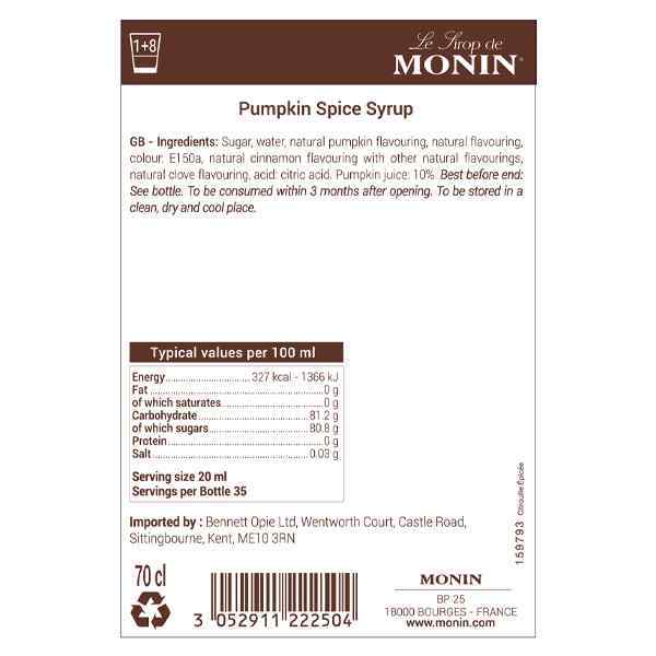 MONIN PREM. PUMPKIN SPICE COFFEE SYRUP 1x70cl