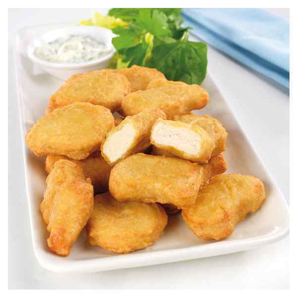 - Top quality reformed chicken nugget in a crispy battered coating