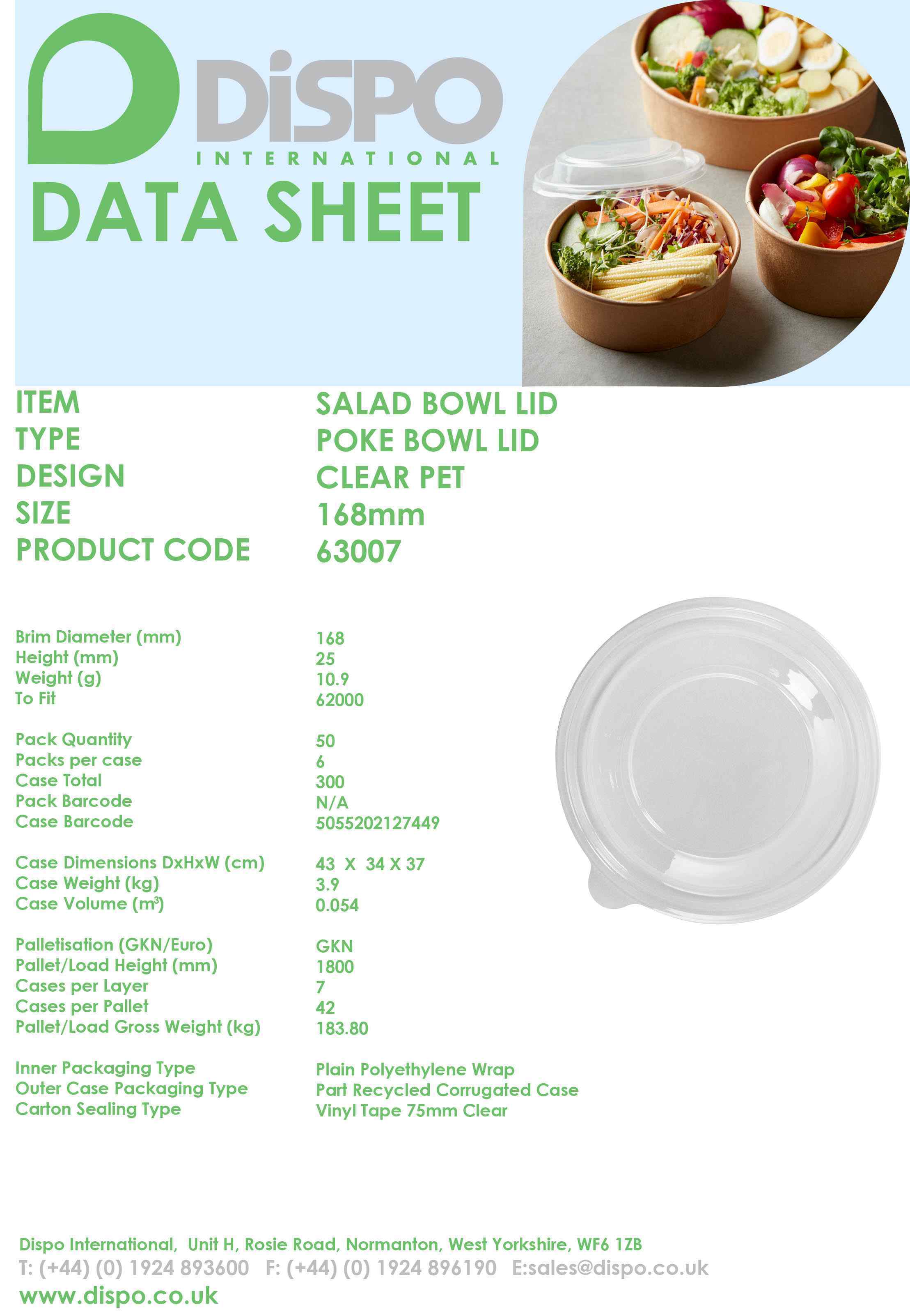 PET LARGE SALAD BOWL LIDS FOR 1000ml 6x50 CODE:63007 USED FOR GEA352