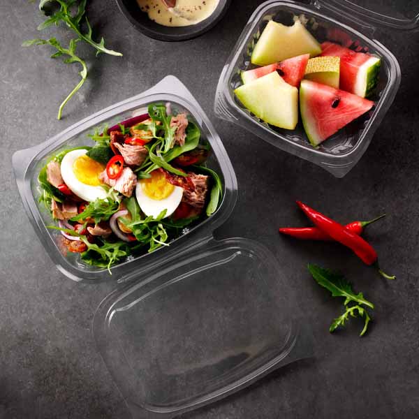 Hinged containers with a practical design kp Newleaf® hinged containers have a practical design and offer a cost-effective packaging solution for everything on the menu.