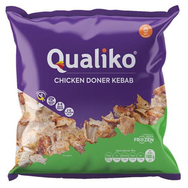 QUALIKO FROZEN HALAL COOKED CHICKEN 1kg DONER KEBAB, SLICED - BAG