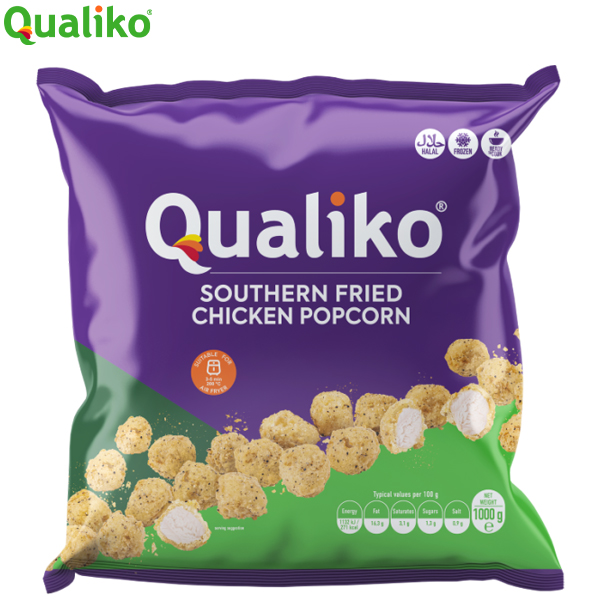 QUALIKO HALAL SF POPCORN CHICKEN 1x1KG SOUTHERN FRIED, 7gm, MEAT CONTENT 64%