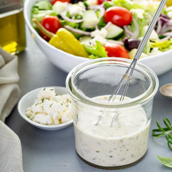 A thick, creamy blue cheese dressing made with real Danish Blue Cheese, ideal for salads, burgers, dipping sauces, and wraps.