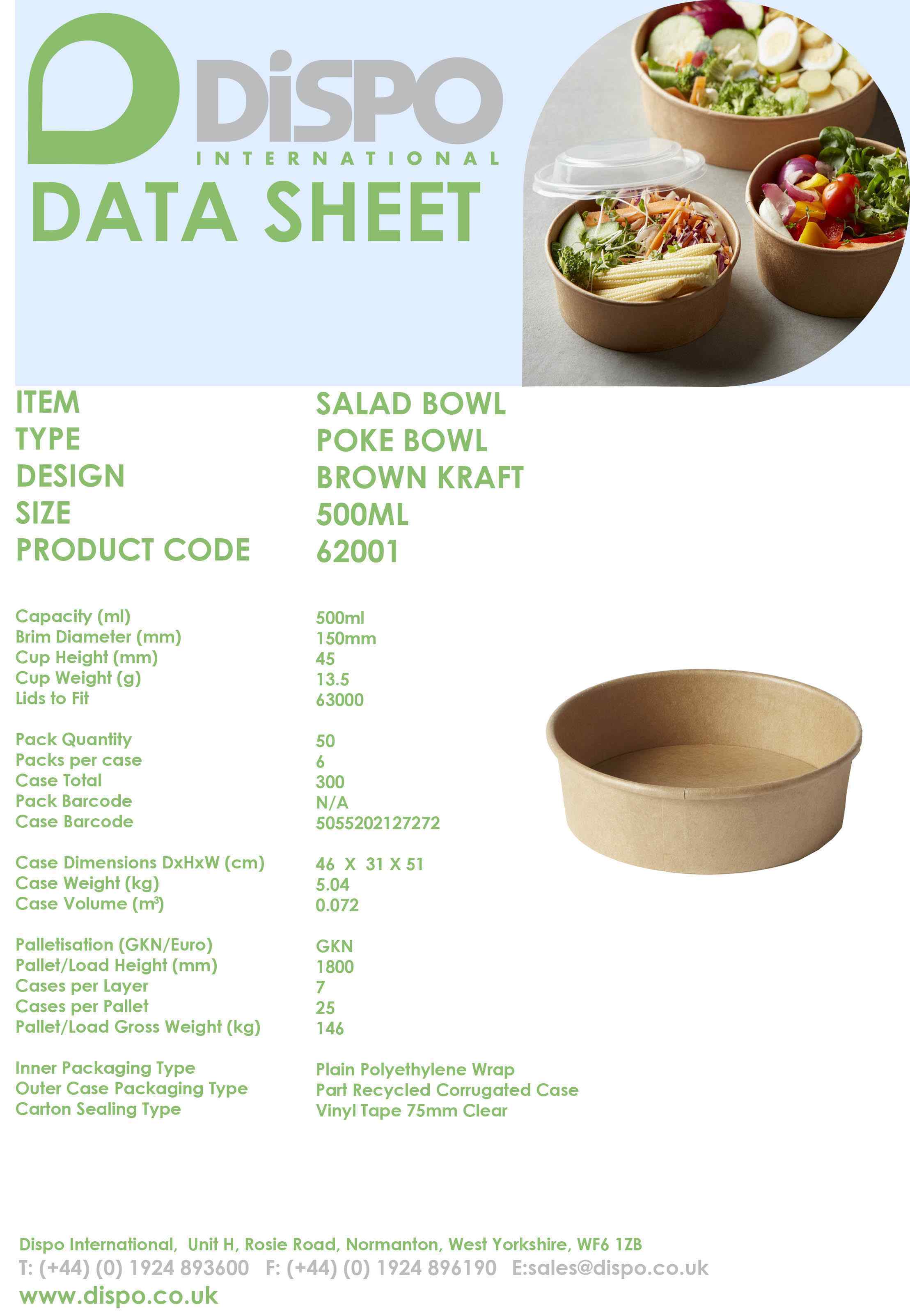 SMALL KRAFT ROUND SALAD BOWLS 6x50 - 500cc DIAMETER: 150MM CODE:62001- 500ml
