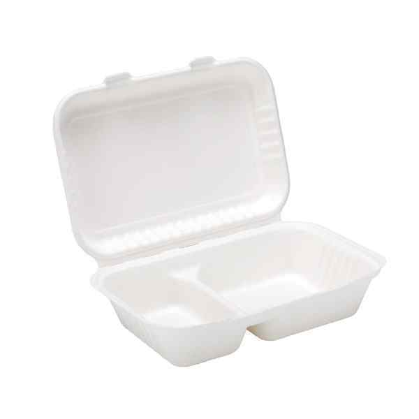 The 2 compartment clamshell box is perfect for separating food; whether you have a cold salad in one section and some hot chips in the other one.