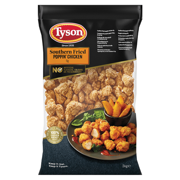 TYSON SOUTHERN FRIED POPPIN' CHICKEN 1x1KG **BAG** HALAL