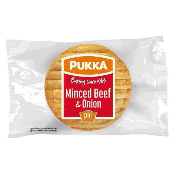 Product Description: Minced Beef & Onion pie is popular all over the UK, and it’s no wonder. With its meaty minced beef, chopped onions and rich gravy, all wrapped up in a light puff pastry case, this traditional pie gets the simple things bob on.