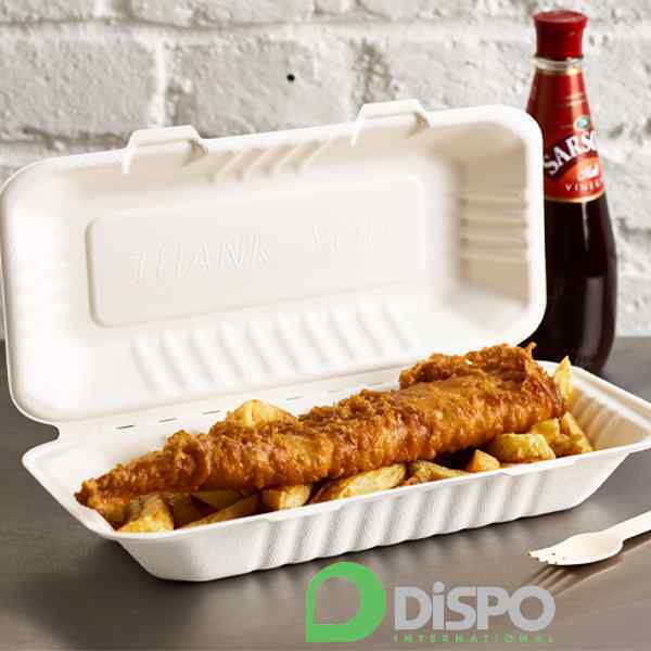 XTRA LARGE BAGASSE FISH & CHIPS BOX 2x100 PTODUCT CODE: 91026 - 324mm x 155 x 75mm FC1