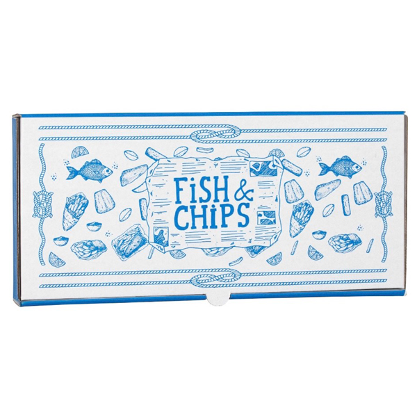 XTRAPACK MEDIUM 10.9" FISH & CHIPS BOX 100's BLUE PRINTED 275x154x54